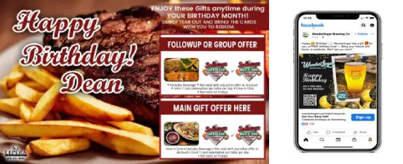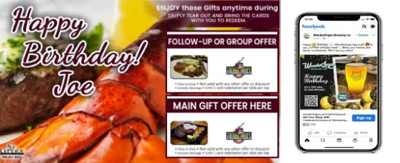 To get the largest response, we craft a custom Birthday Card with a gift from you that “sings” Happy Birthday. Plus send Facebook invites to New locals. We have all their names to invite right now. Gets you thousands more NEW local sales & NEW repeat customers you aren’t seeing now.