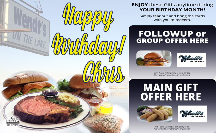 Home › Photo Gallery › Mailer Sample › Wendt's on the Lake